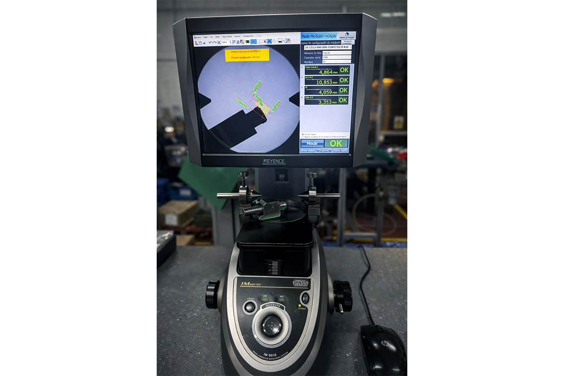 Keyence (control visual): sistemes de visió artificial que asseguren el control automàtic de característiques crítiques, detectant desviacions dimensionals, defectes superficials o errors de forma, millorant la seguretat del procés i reduint el risc d’errors.